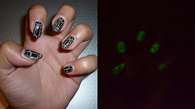 Ik heb aardig wat foto's gemaakt van mijn nagels. Ghoulish Glow is namelijk een glow in the dark nagellak dus wilde ik in het licht foto's van mijn nagels hebben en in het donker om een beetje een beeld te krijgen van de Ghoulish Glow.